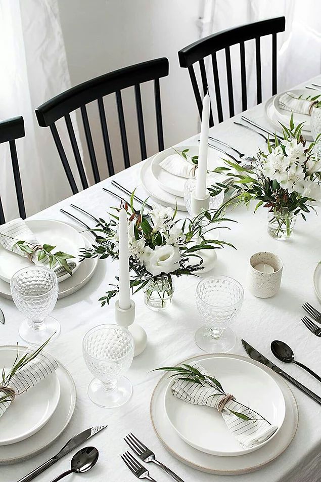 1. Цветы, свечи и вазы — отличные предметы для украшения стола. При их использовании старайтесь придерживаться нечетных чисел. Это более приятно для глаз и помогает создать ощущение баланса. Использование разной высоты тоже может хорошо сработать (например, использование более коротких цветов в контрасте с более высокими ветвями).