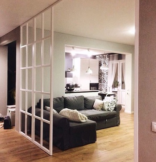 В однокомнатных квартирах очень часто для зонирования комнаты используют перегородку. Он может быть мобильным или стационарным. Первый вариант хорош тем, что при необходимости экран можно убрать или переместить.Однако полной изоляции это не дает. Стационарная перегородка, как правило, выполняется из гипсокартона. Крепится к стенам, полу и потолку. Сделать его можно как сплошным, так и с элементами декора в виде арок, полочек или даже окон. Недостаток такого типа зонирования заключается только в том, что без ремонта перегородку нельзя перенести в другое место. О плюсе — полная изоляция пространства.