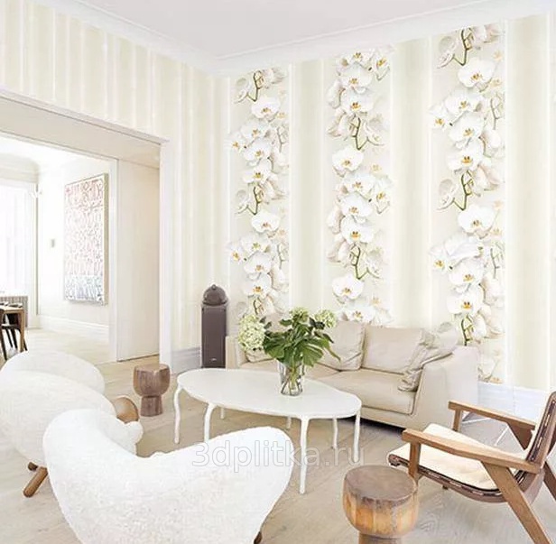 Скрывает архитектурные недостатки поверхностей. Например, гостиная с неидеальной геометрией стен — выбираем стену с наименьшим количеством изъянов и делаем на ней акцент. Клеим обои с оригинальным рисунком (3Д или фотообои), а остальные три декорируем в сдержанные тона. Таким образом, одна стена будет забирать на себя все внимание, отвлекая от недостатков трех других;