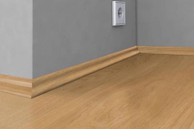 Такой декор, выполненный из дерева, используется при укладке пола из ламината или паркета. Для его производства используют сосну, ель, дуб, ясень или вишню. В большинстве своем подбирается именно та порода дерева, из которой изготовлено само покрытие пола.