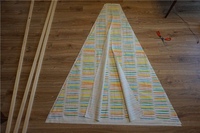 Палки решили вставлять в специальный карман, который вшивался между двумя сторонами вигвама, таким образом, можно было четко придерживаться выбранного размера сторон трапеций и избавиться от дополнительных швов.