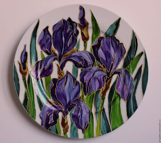 Роспись тарелки в витражной технике