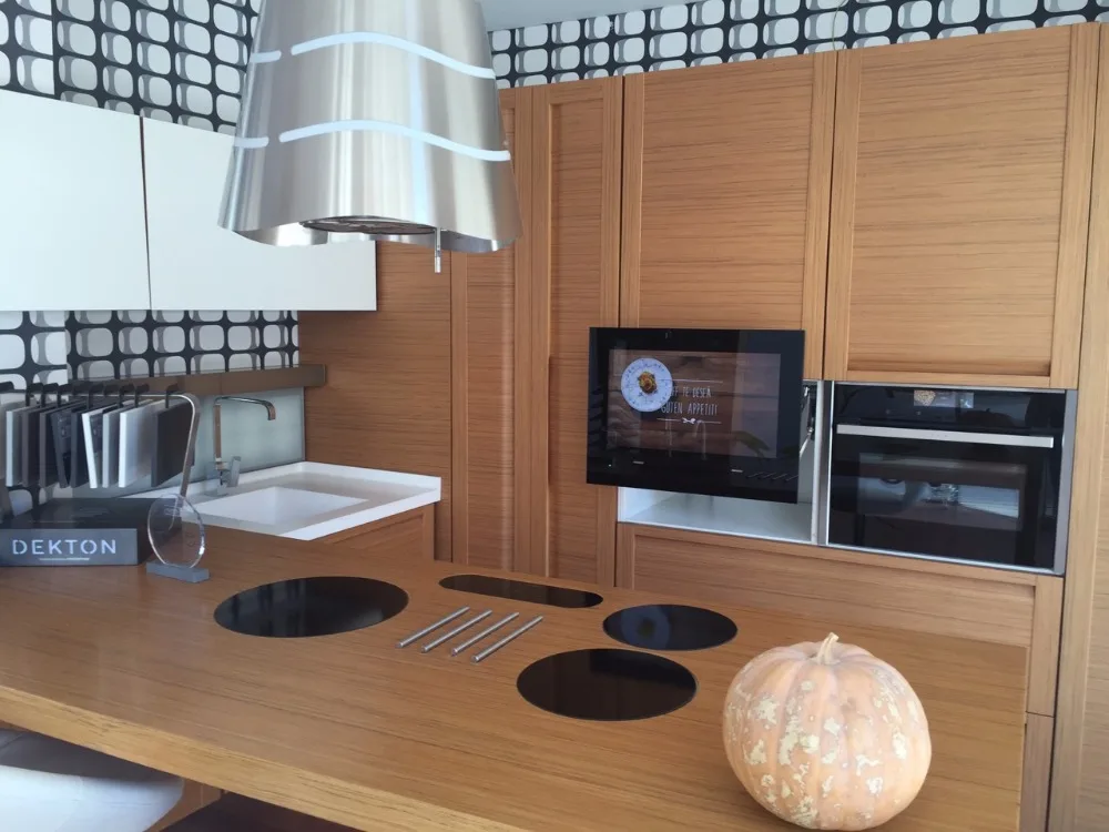 Производители предлагают широкий ассортимент продукции, в качестве последнего ноу-хау они презентуют встроенный телевизор. Его можно устанавливать в двери навесного шкафа, крепить на рабочий фартук, делать частью оборудования колонны, где размещаются духовой шкаф, микроволновка и кофемашина.