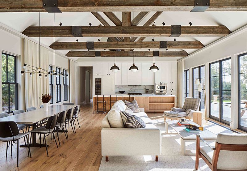 Чтобы почувствовать большую высоту по гораздо более низкой цене, рассмотрите возможность обнажить потолок, т. е. снять его, чтобы открыть балки наверху. Это выполнимый вариант, если крыша вашего дома уже обрамлена большими балками и стропилами (более распространенными в домах до 1920-х годов), в отличие от более узких потолочных балок и стропил в современных домах.
