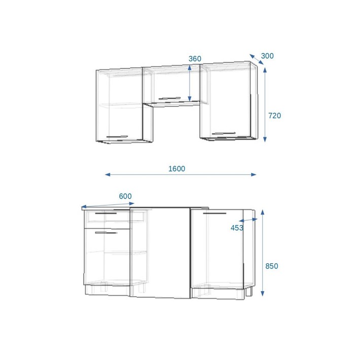 - высота самого фасада – 30, 60, 70 и 90 см, первая величина описывает полку;