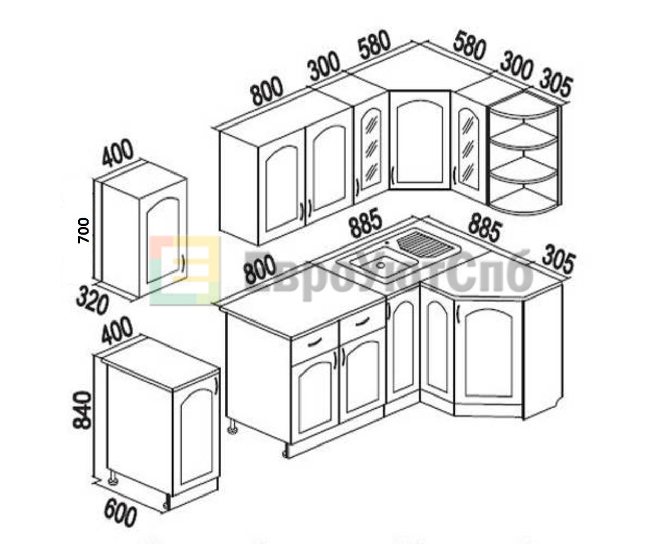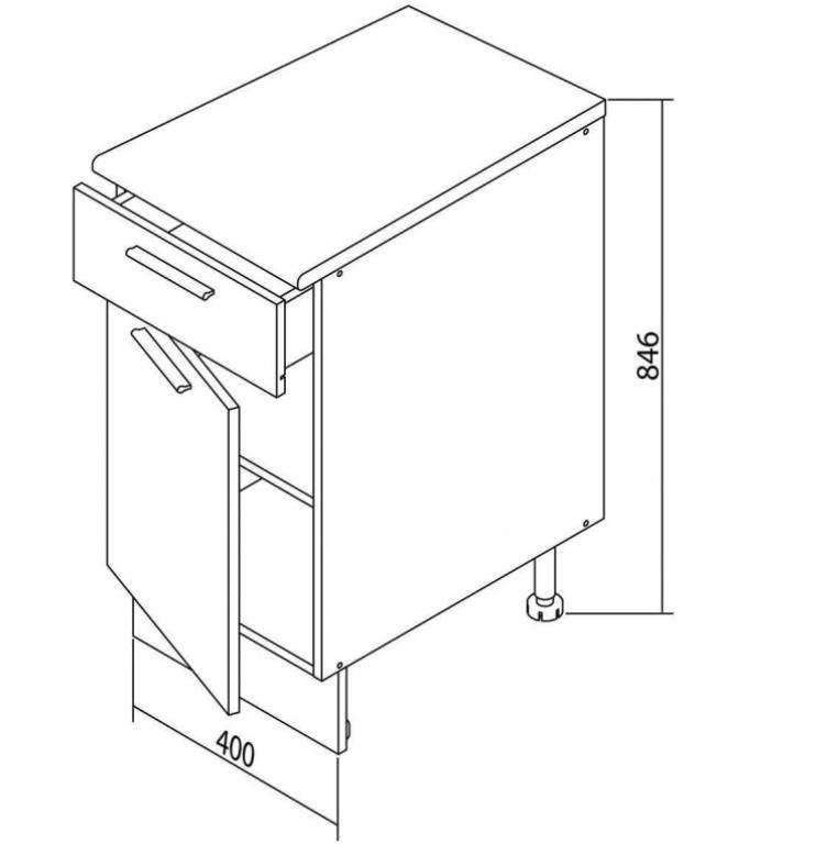 Стандартная ширина или глубина напольного шкафа часто определяется правилами кухни.