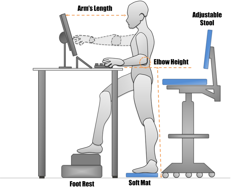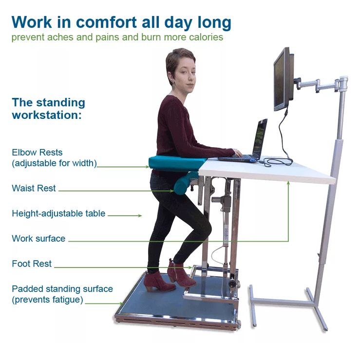 - Если не уделять должного внимания правильной эргономике, стояние, как и сидение, может ухудшить осанку.