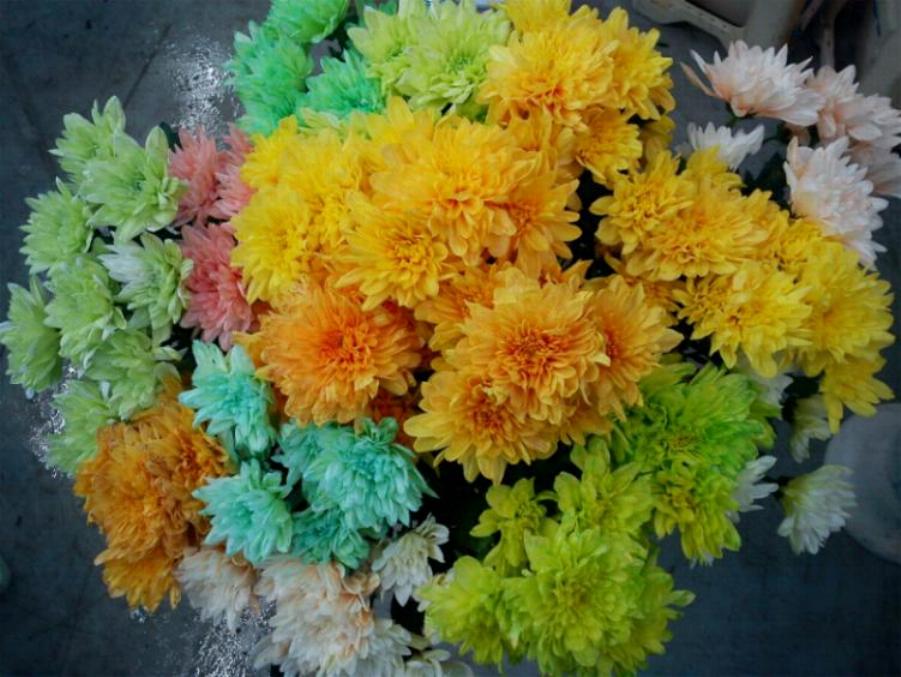 хризантема розовая — многоцветный — букеты из цветущих радужных хризантем, фото и фотографииРозовая хризантема — многоцветный