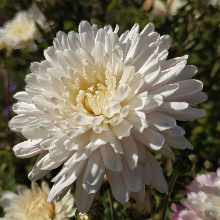 Элен Ellen – хризантема высотой до 120 см. Цветки белые с желтым центром, махровые.