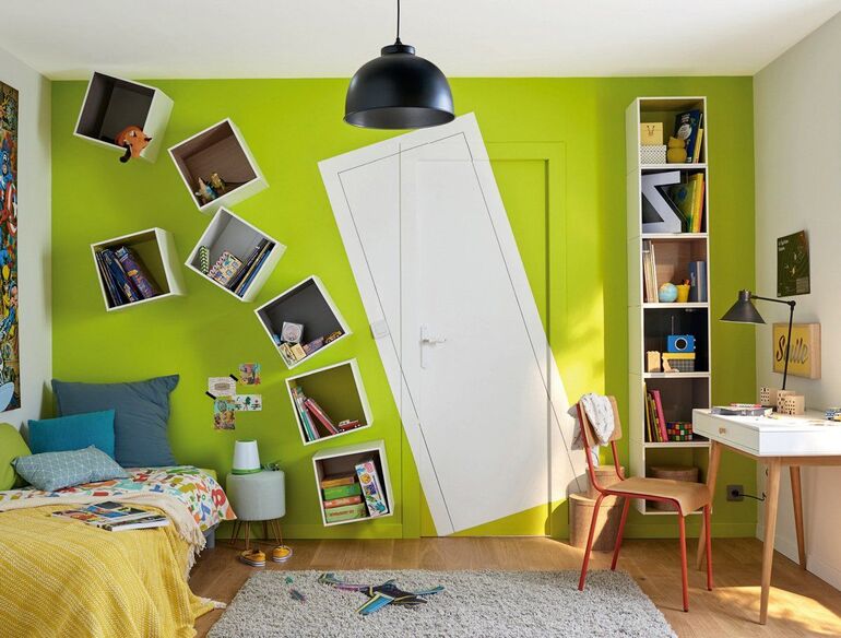 Именно поэтому стены детской лучше покрасить (не масляной, а водоэмульсионной краской), но не оклеивать обоями: после того как художественный период пройдёт, будет проще привести интерьер в порядок.