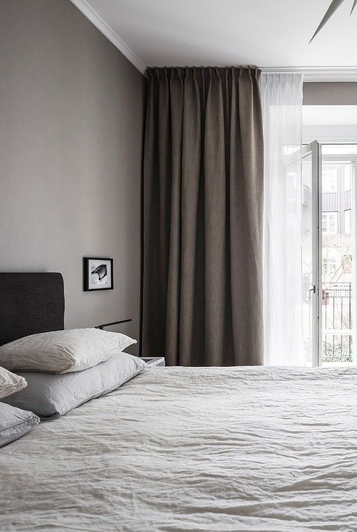 Более тяжелые шторы на подкладке, которые сведут к минимуму любые утечки света, будут наиболее естественным подходом для спальни. Это не значит, что вы не можете выбрать легкую льняную занавеску, просто имейте в виду, что вам, вероятно, придется подумать о вложении средств в штору, чтобы повесить ее под ней.