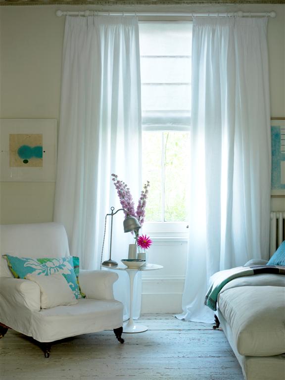 Они не затеняют письменный стол и не отвлекают внимание от предметов изучения. - В домашних интерьерах, перенасыщенных изобилием ярких предметов обстановки, утомляющих взгляд витиеватыми и сложными орнаментами на обоях, текстильном оснащении актуально повесить занавеси светлых оттенков. Они помогут добиться сбалансированности и нивелировать эффект чрезмерной аляповатости.