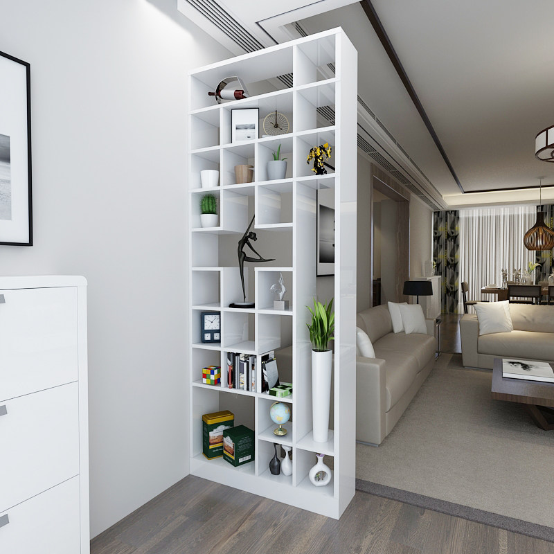 Стеллаж для зонирования комнаты не обязательно делать высоким, до потолка. Более низкий отделяет зоны, и в тоже время оставляет ощущение пространства. В случае, когда комната имеет всего одно окно, отделить зону можно полупрозрачным стеллажом, оборудованным подсветкой. Такой тип перегородки универсален, выполненный из металла или дерева, бамбука, ротанга или рисовой бумаги, подходит под любой стиль помещения. Он доступен по цене и прост в обслуживании, сборке.