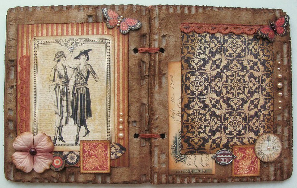 Ширина должна увеличиваться по пропорции. После этого необходимо сложить листы таким образом, чтобы образовались корешки, которые понемногу увеличиваются в размере (их лучше нарисовать перед процедурой). В конечном итоге получится книжка с корешком. По линии этого корешка все детали нужно склеить. Далее происходит прошивка вощеным шнуром. Основа фотоальбома своими руками готова.