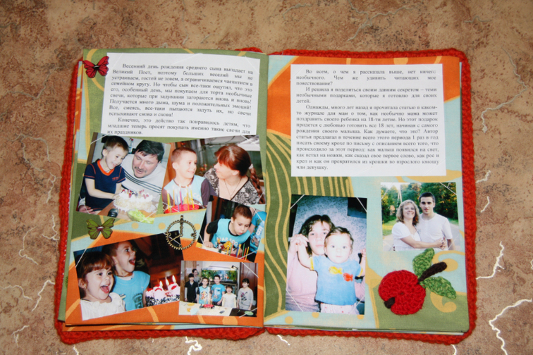 Оформленные семейные страницы ребята приносят в группу и представляют их своим друзьям. С какой гордостью они рассказывают о том, как вместе с папой, мамой обсуждали содержание рубрик, подбирали фотографии, красивые картинки, а потом все вместе вырезали, наклеивали их, придумывали и делали подписи на оформленном листе! Дети, как правило, интересно и эмоционально рассказывают о своих любимых игрушках, домашних любимцах, о том, как отдыхают всей семьей, и т.