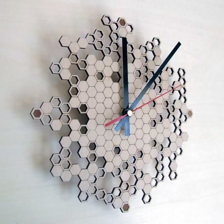 Дополните геометрическую тему домашнего декора этими деревянными настенными часами в виде сот, на которые очень приятно смотреть и которые никогда не выйдут из моды. Возьмите круглую деревянную подставку для часов, нанесите трафарет наполовину или полностью, чтобы получился узор в виде сот. Затем установите механизм часового механизма на его заднюю часть, чтобы стрелки часов оказались на его передней стороне.
