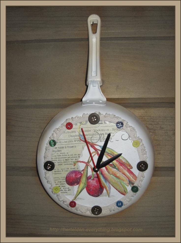 Загляните в шкафы и ящики на своей кухне, и вы обязательно найдете множество ненужных или отслуживших свое вещей, которые ещё могут послужить в другом качестве. Например, старая крышка от кастрюли, единственная оставшаяся от сервиза тарелка или сито для муки могут стать прекрасной основой для часов.
