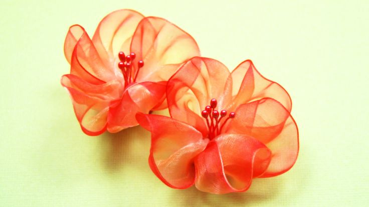 - Есть и еще один способ, как сделать розу из ткани. Для этого понадобятся лоскутки органзы.