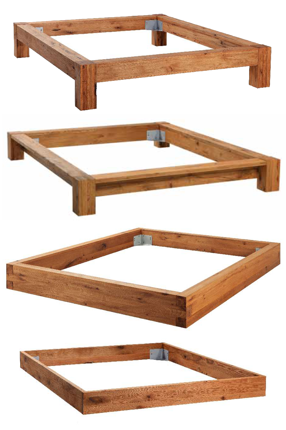 Автор использовал несколько разных пропиток. Честно говоря, нет никакого метода, правильного или неправильного, просто красьте, как нравится, иногда используя один цвет, накладывая слои на две или три разных пропитки. Также здесь использовались металлические кронштейны. Вы просто вкручиваете их в дерево, и две части зацепляются друг за друга. Очень просто. Вот и все, добавьте опоры матраса, и готова кровать размера «queen-size»! Подробней сборке можно прочитать на сайте.
