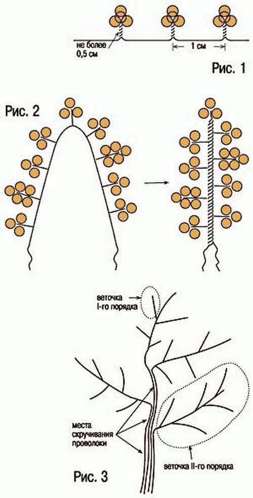 - нанизывание на проволоку бисер и скручивание ее для формирования мелких веточек;