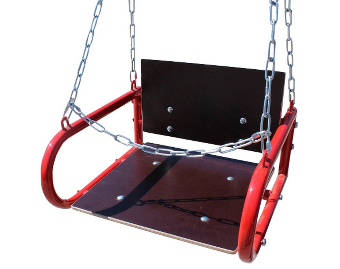 Сидушка из пластика приобретается в готовом виде и устанавливается на качели.