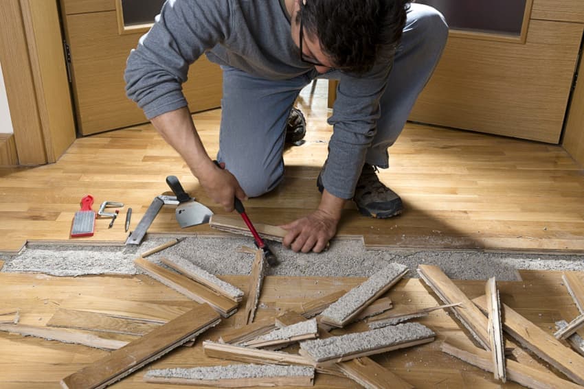Массивные полы из твердой древесины обычно прибиваются гвоздями и крепятся к черному полу, но если у вас есть паркетные полы, проверьте, как они были уложены. Хотя большинство паркетных полов также прибиты гвоздями, некоторые из них устанавливаются как плавающие полы.