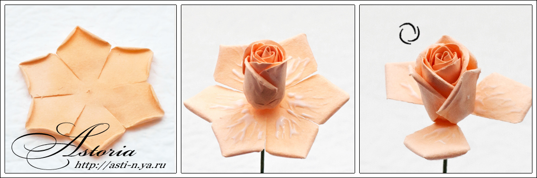 Смотрите видео для более подробной информации. - Приклейте бутон в центре, чтобы закончить розу.