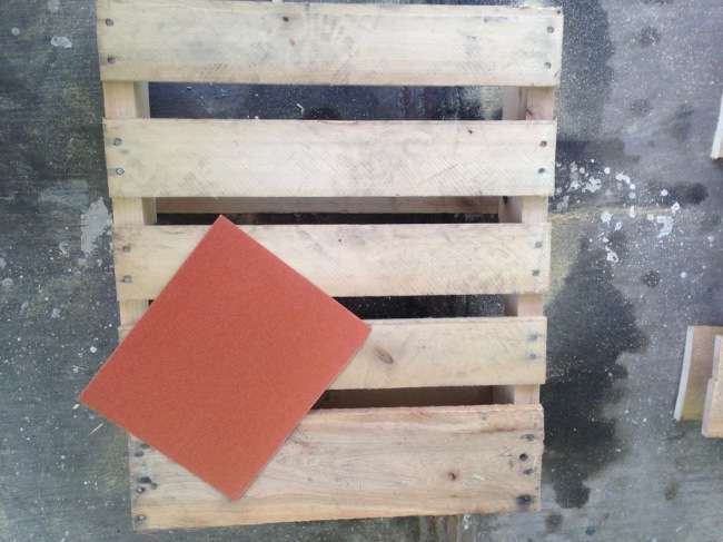 Крепление столешницы. Фанера размером 380 на 450 мм с зашлифованными углами крепится с с помощью саморезов.