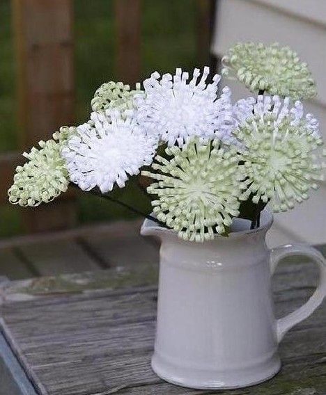 Белые и простые цветы из туалетной бумаги украсят комнату или обеденный стол на летней кухне.