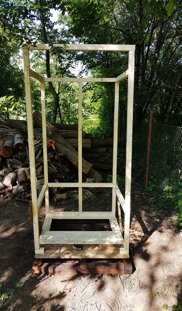 Сведя заднюю часть здания, можно начинать закреплять каркас под место, где будет расположено отверстие и так называемый «унитаз».