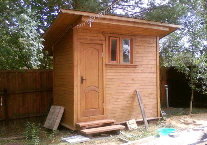 Но и в ней при желании можно найти место для душа и вывести слив с поддона на улицу. Такая баня не займет много места.