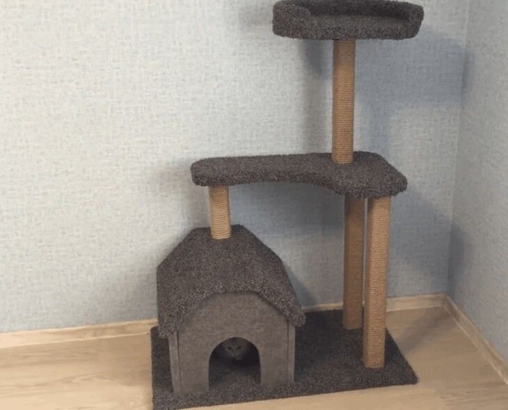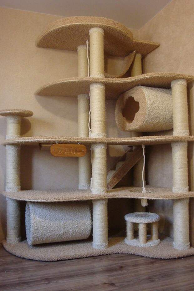 Такое сооружение позволит вашему питомцу оставаться в хорошей форме, тренировать мышцы, точить коготки и прятаться от чужих глаз. А для вас такой комплекс будет верной гарантией целостности штор, мебели, ковров и горшков с цветами.