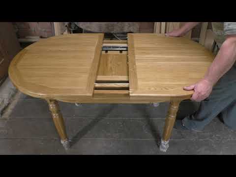 Деревянный раздвижной стол может иметь круглую (в раздвинутом состоянии – овальную) форму или быть выполнен в форме стола-книжки.