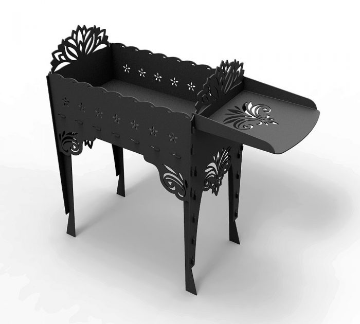 Первые два пункта работ такие же, как при выполнении неразборного мангала – чертеж и вырезание деталей мангала из стального листа. Но при выполнении разборного мангала следует прибавлять 3-4 сантиметра на стыки.