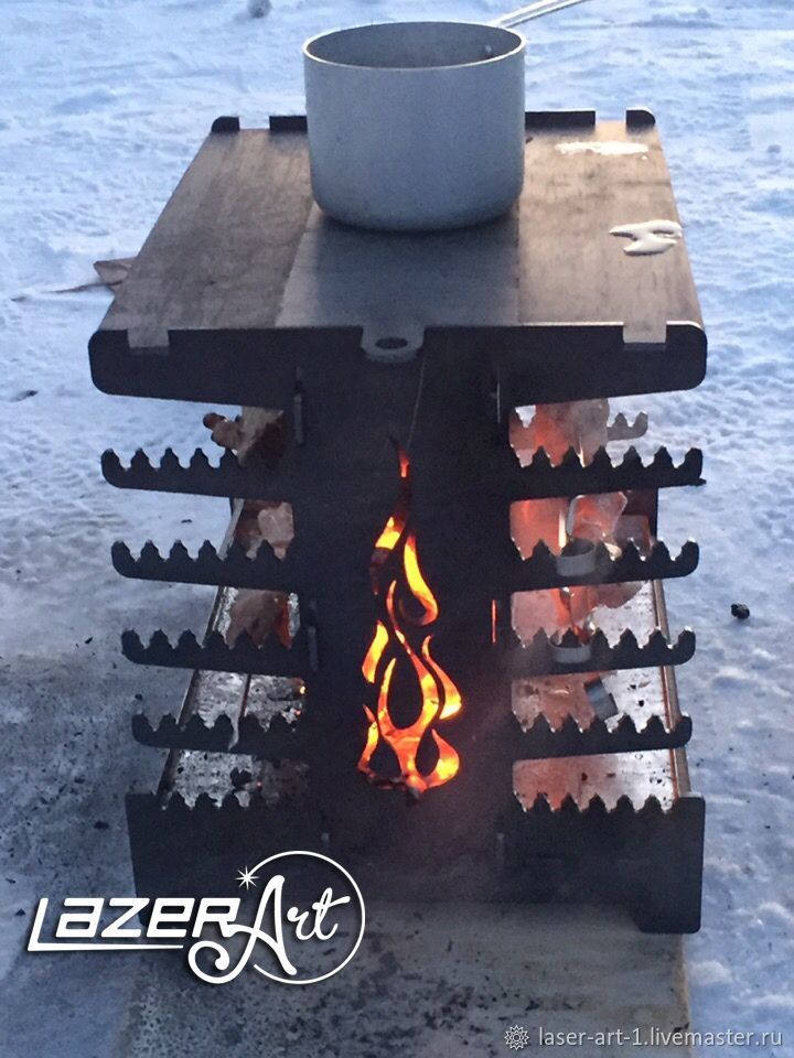 Это нержавеющая сталь толщиной 6-8 мм, устойчива к ржавлению, термостойкая; - мангал получается легким, его просто переносить или перевозить;