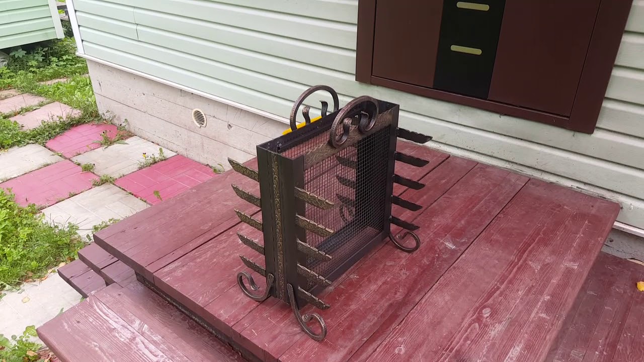 Очень красиво смотрятся кованые изделия, украшенные различными узорами и фигурами. Такие типы изделий обязательно оборудуют дополнительными полками, отсеками для дров, колёсами и подставками.