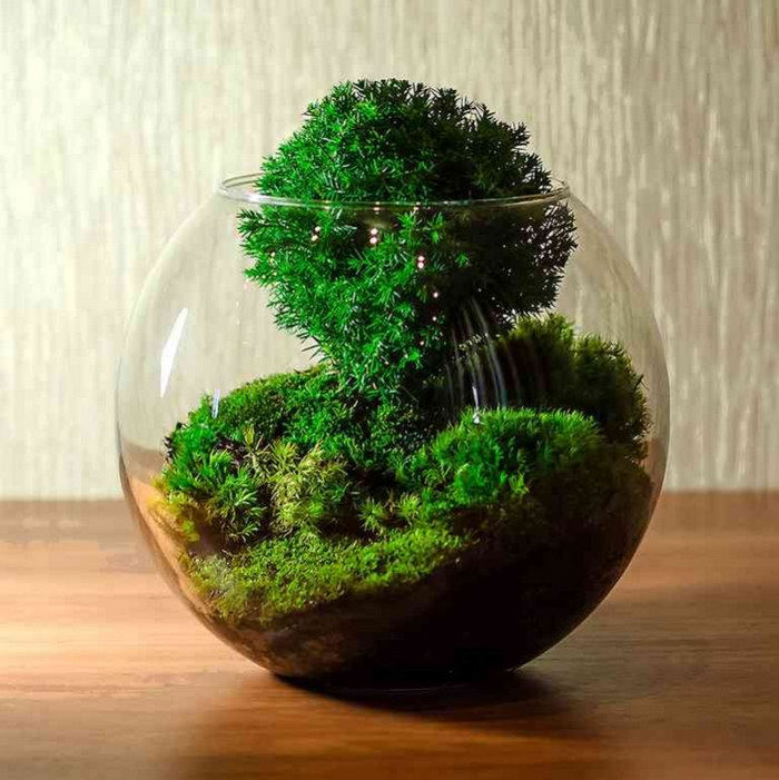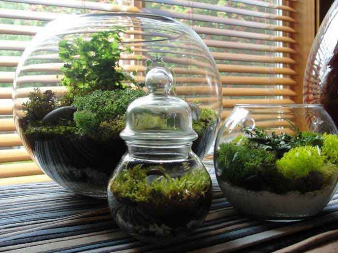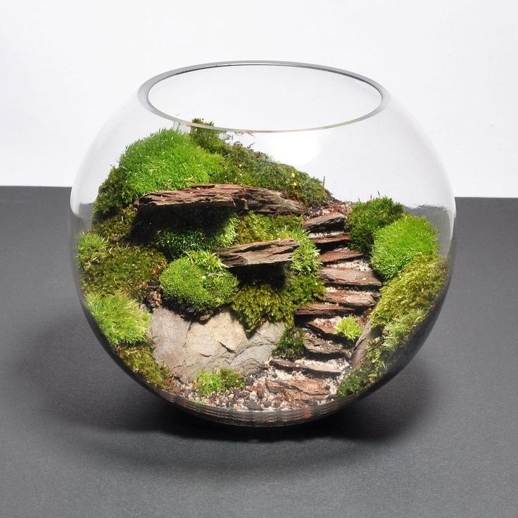 Выращивать бриофиты можно в любой емкости, но эффектней всего они смотрятся на дне прозрачных аквариумов или ваз, в неглубоких плошках, глиняных тарелках и чашах.