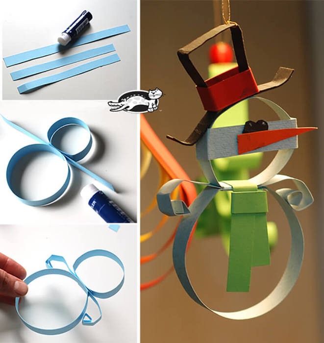 - Точно так же вы можете превратить эти простые бумажные безделушки в бумажные украшения в виде снеговика.