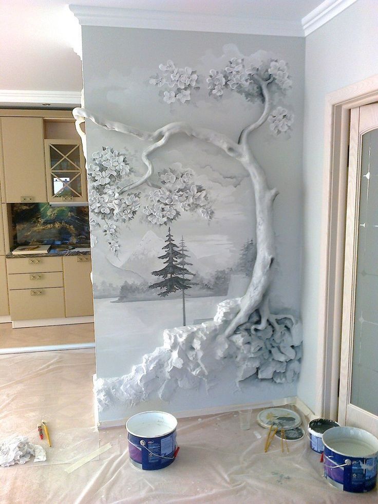 Фрески деревья в интерьере