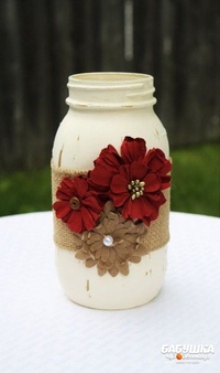 Из стеклянных банок любых форм и размеров получаются отличные вазы. При этом можно оставить банку такой, какая она есть (только лишь снять этикетку), что подчеркнет красоту букета, а можно использовать ее как основу для творчества. Будущую вазу можно просто раскрасить или разрисовать витражными красками, оформить в технике декупаж или обклеить декоративными элементами — что вашему интерьеру угодно. А для того, чтобы правильно подобрать к новой вазе букет, вдохновитесь нашим постом «Гармония в цветочном декоре».