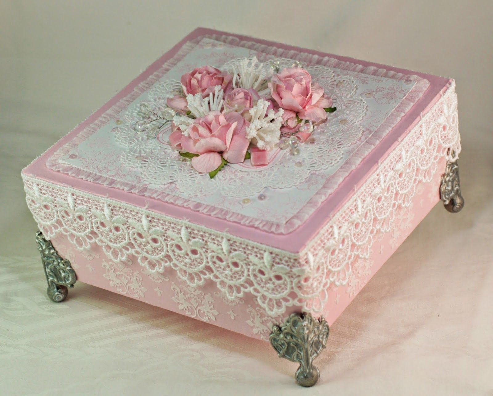 Дополнительными элементами декора могут стать различные бусинки, искусственные цветы, бантики, атласные ленты, кружевная тесьма и многое другое. Аналогичным образом декорировать картонную коробку можно тканью, упаковочной бумагой или бумагой для скрапбукинга.