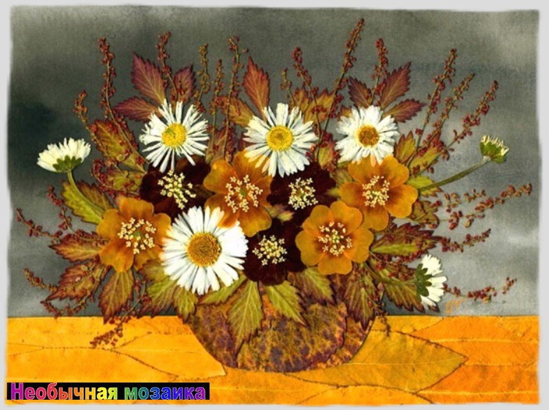 Если летом или в начале осени вы не поленились собрать и засушить листья и цветы, то в свободную минутку сможете своими руками сделать удивительные и по своей красоте, и по простоте исполнения, картины из сухих листьев и цветов.