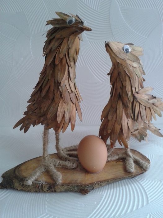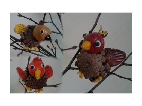 И напоследок идеи поделок птиц из природных и подручных материалов: кедровых или сосновых шишек, раскрашенных перьев, картона и пластилина.