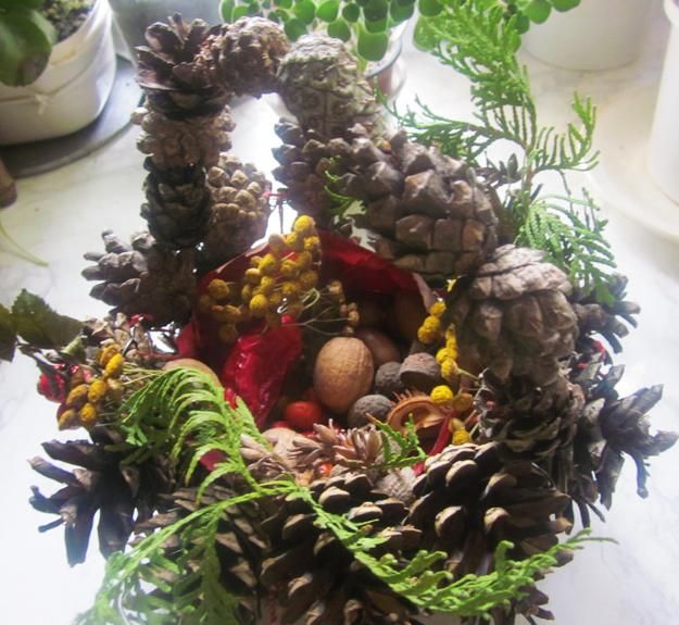 Поскольку центральная часть была усыпана зеленью и сосновыми шишками, я подумал, что она хорошо подойдет к Рождеству. Вот как это выглядит сейчас: