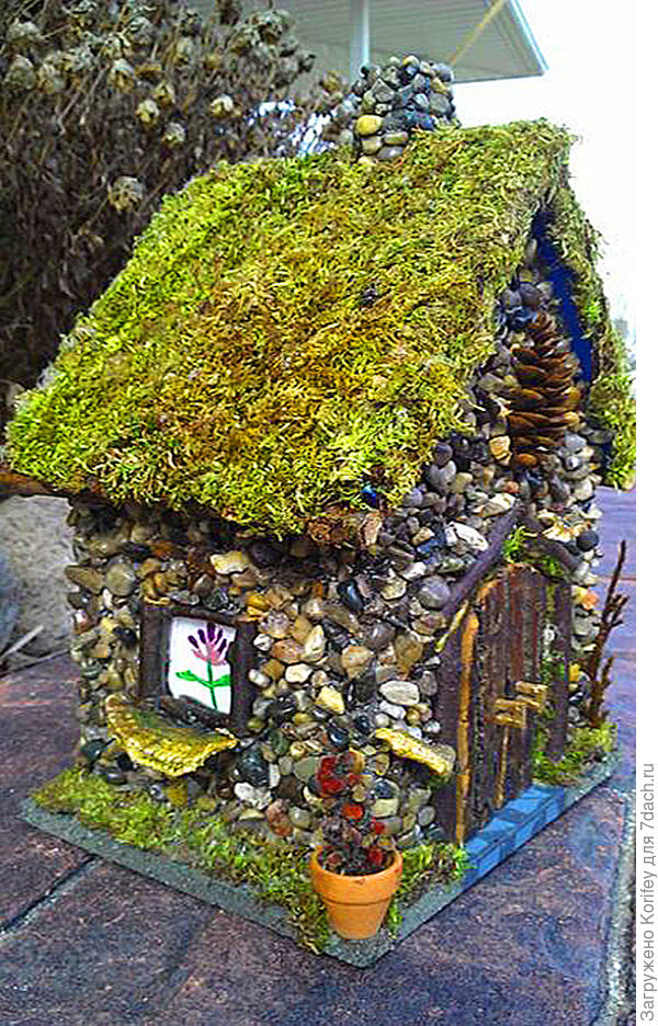 - Осталось обклеить по контору картона кору дерева. А «швы» можно задекорировать мхом или листиками туи.