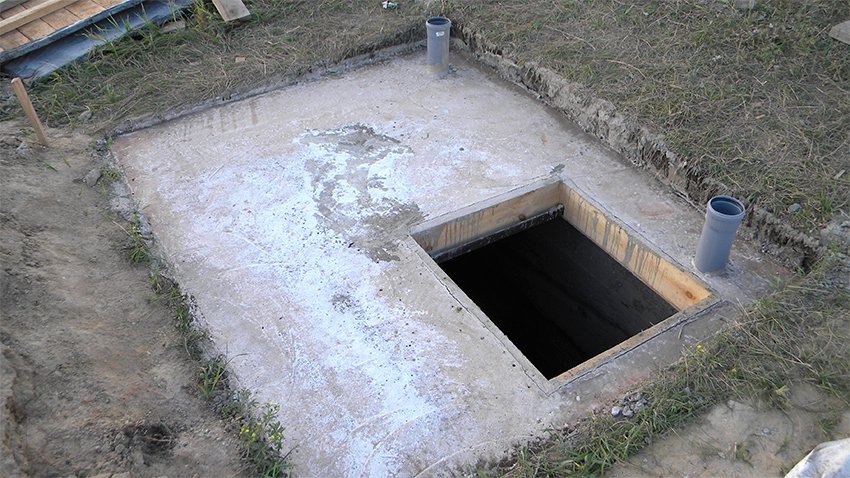 Для постройки погреба производится выемка почвы на глубину около метра. Фундамент сооружается из кирпичей или бетона, с подъемом стен на высоту до двух метров. Основой для перекрытия служит дерево, бетон или шифер.
