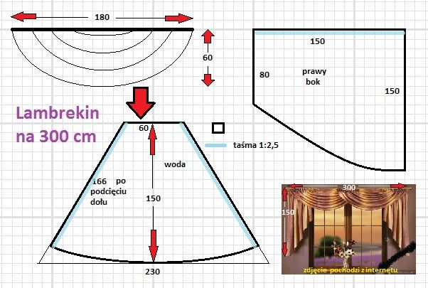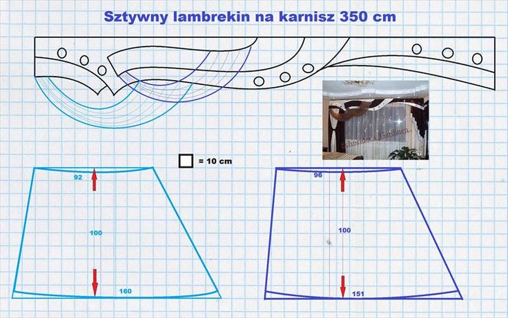 Если предполагается сшить ламбрекен со свагами, то нужно определиться сколько их будет на окне и рассчитать длину каждого элемента. Для небольших кухонь с узкими окнами лучше всего выбрать ламбрекены с одним свагом.
