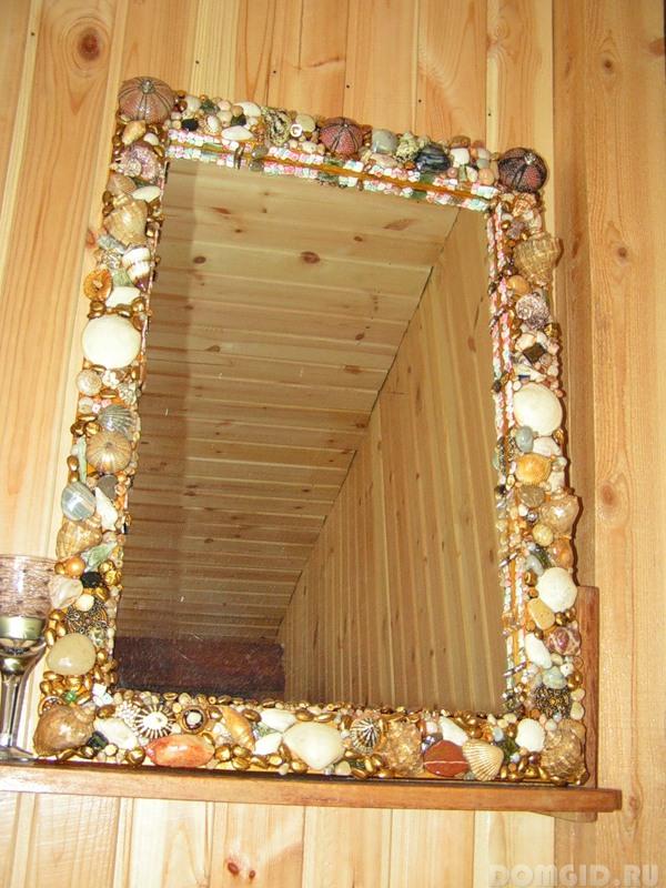 Начнем с идеи, для реализации которой не потребуются редкие материалы или специальные инструменты, только ваше терпение и чувство прекрасного. Отправляясь в отпуск на море или к ближайшему водоему для пикника, заботливо подберите симпатичные предметы, которые смогут в любую минуту сложить в вашем воображении умиротворяющий прибрежный пейзаж. Это могут быть ракушки, галька, веточки, обточенные волнами кусочки разноцветного стекла. Оклейте ими раму для зеркала с помощью клеевого пистолета.