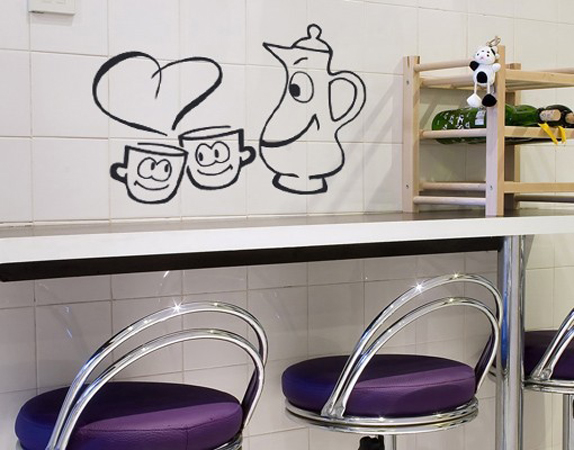 Самый простой способ нанести рисунки на кухонную тему – использовать наклейки. В магазинах представлен огромный выбор изображений на любую тематику.