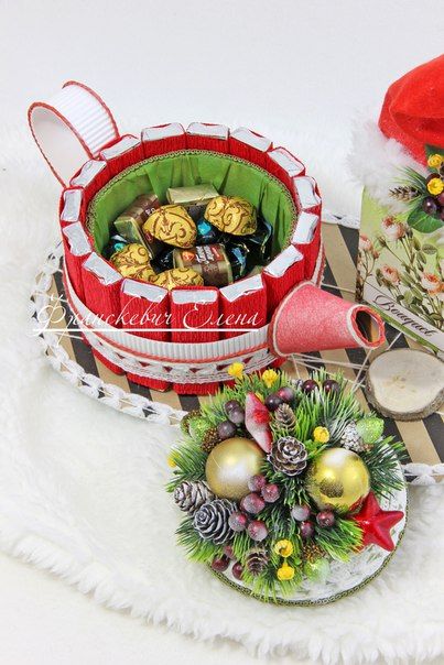 В новогоднюю ночь у многих возникает вопрос о выборе небольшого подарка в качестве знака внимания коллегам, родным, друзьям и детям. В качестве удачного решения вопроса выступают сладости, однако покупать дорогие наборы конфет или шоколада не обязательно, так как вкусный и красивый подарок можно сделать своими руками.